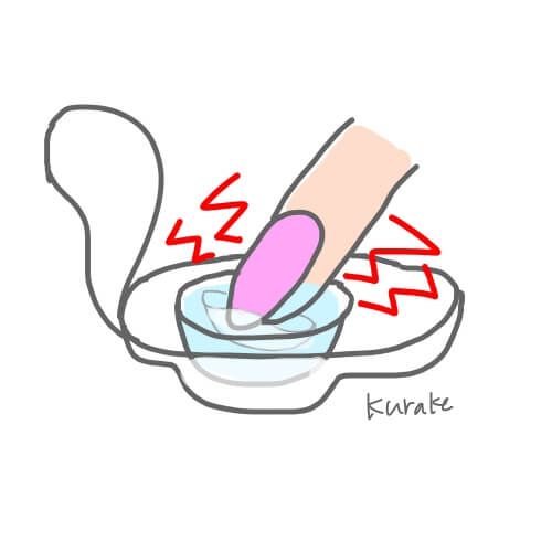これからは爪が短い状態をキープするか、一旦レンズと液を別の容器に出して取り出しやすくしてから装着するべきですね。
